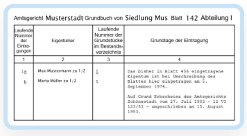 Das Grundbuch gibt Auskunft über die Eigentumsverhältnisse, die Größe des